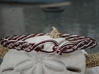 Last week or so ago, I ran across some braids with wire. They looked beautiful! Of course I wanted to try them for myself. I found a tutorial for the Crocodile Ridge Weave Bracelet and I was hooked! I think I've made about 6 of these so far!! Here is a picture of my first one.