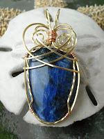 This one is a blue Lapis wrapped in square brass wire and half-round copper. It was the first one I made last Sunday. It opened the door to the following!